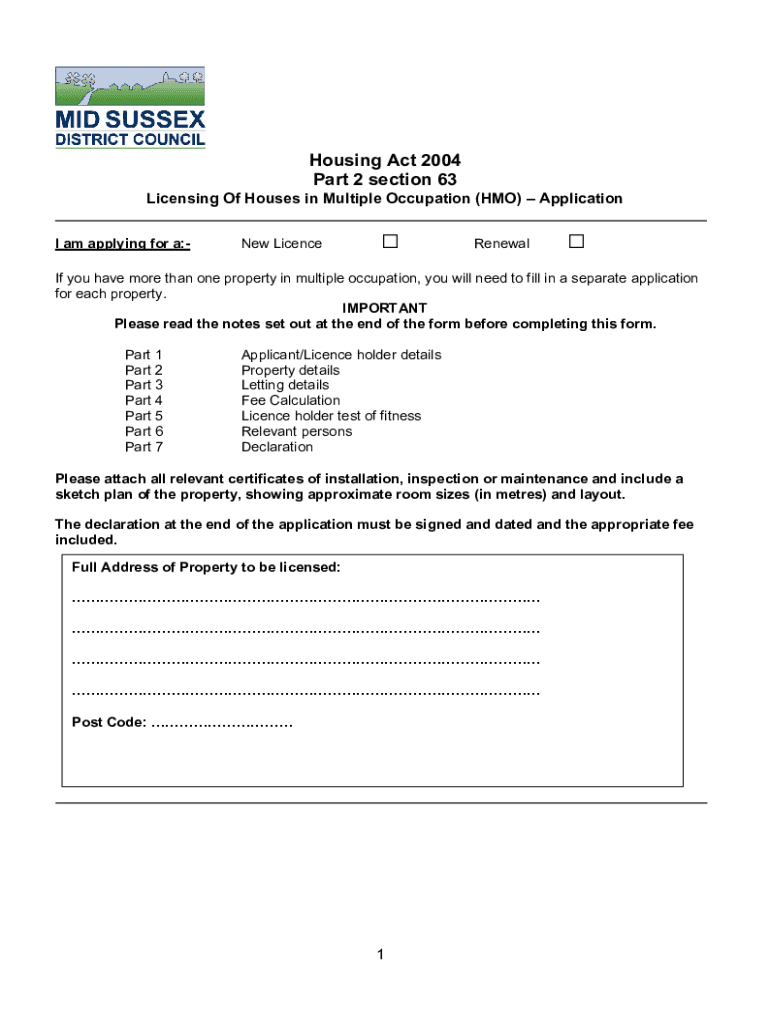 Housing Act 2004 Part 2 section 63Licensing Of Houses in Multiple Occupation (HMO) Application I am applying for a:New LicenceRenewalIf you have more than one property in multiple occupation, you
