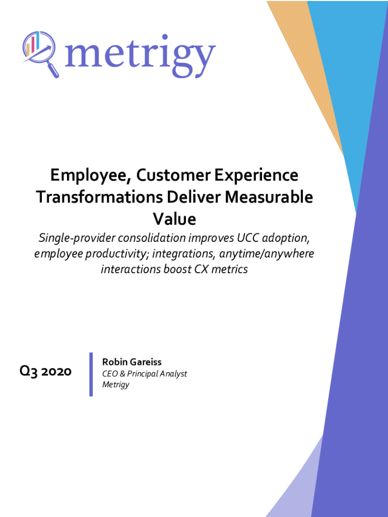 Employee, Customer Experience Transformations Deliver Measurable Value Single provider consolidation improves UCC adoption, employee productivity; integrations, anytime/anywhere interactions boost