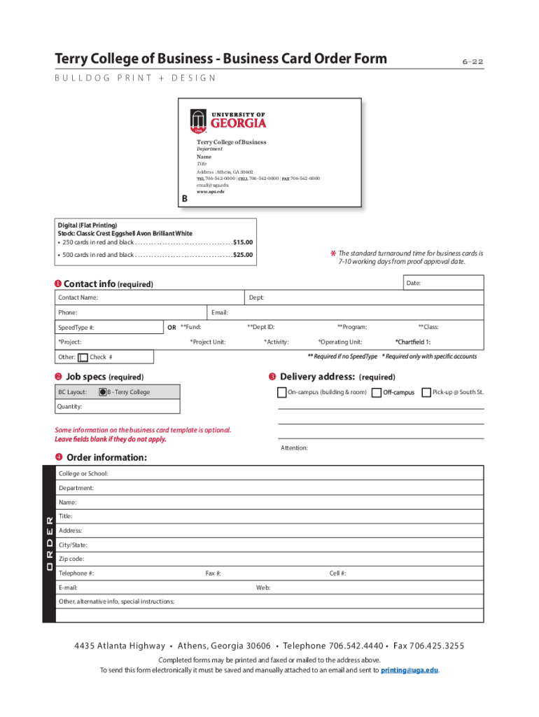 PrintClearTerry College of Business Card Order Form622BULLDOG PRINT + DESIGN Terry College of Business