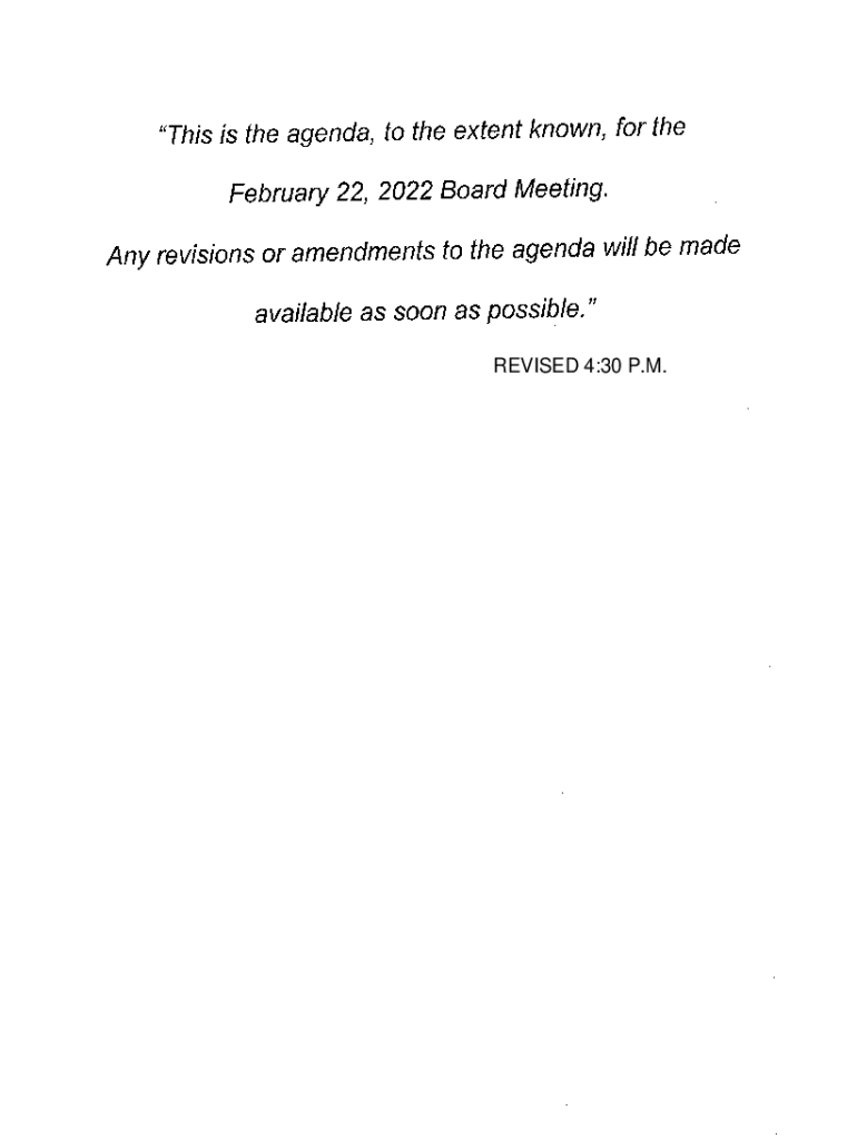 February 22, 2022, Board Meeting. Any revisions or amendments to the agenda will be made