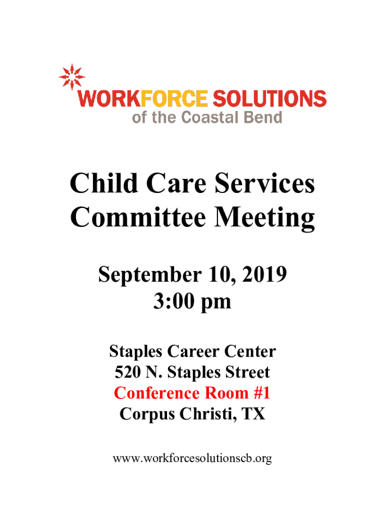 Child Care Services Committee Meeting September 10, 2019 3:00 pm Staples Career Center 520 N. Staples Street Conference Room #1 Corpus Christi, TX www.workforcesolutionscb.orgStrategic Goals Establish
