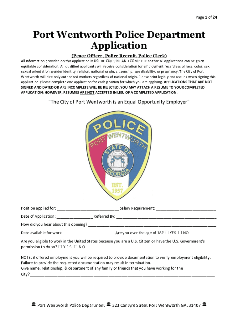 Page 1 of 24Port Wentworth Police Department Application (Peace Officer, Police Recruit, Police Clerk) All information provided on this application MUST BE CURRENT AND COMPLETE so that all applications