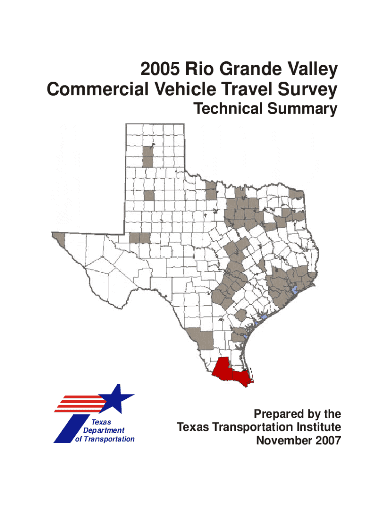 2005 Rio Grande Valley Commercial Vehicle Travel Survey Technical Summary Texas Department of TransportationPrepared by the Texas Transportation Institute November 20072005 Rio Grande Valley Commercial