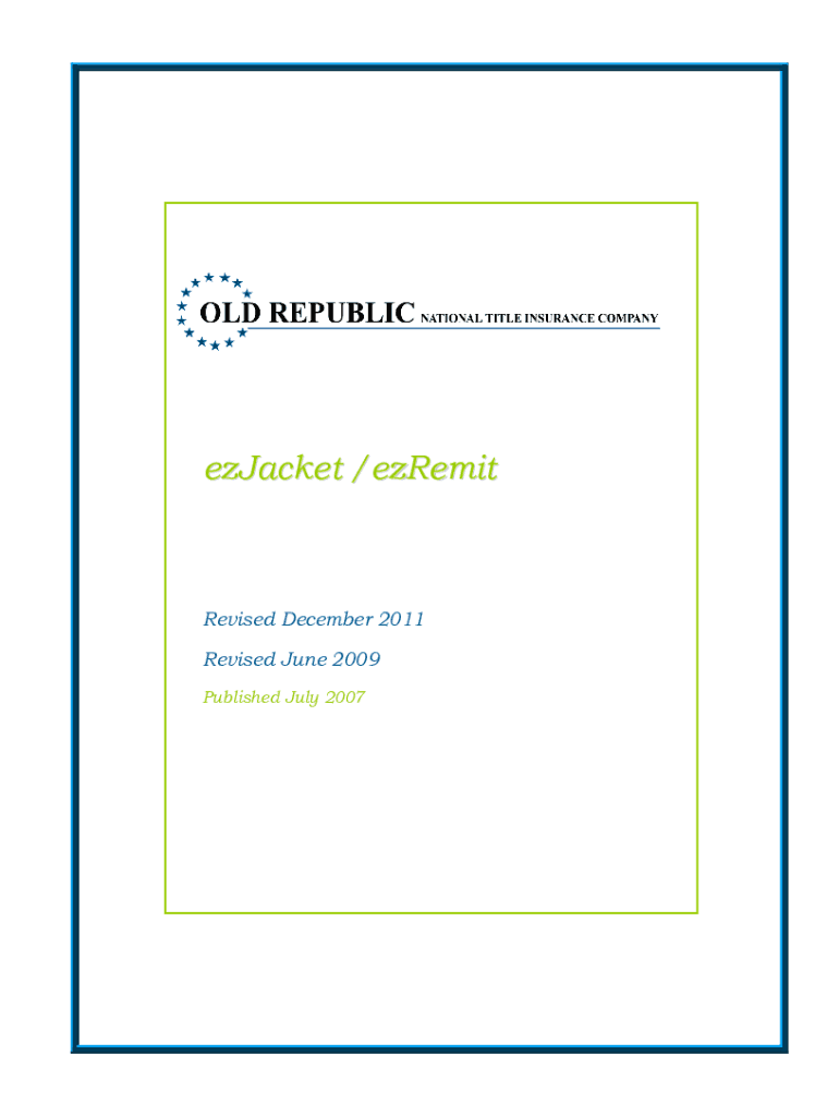 Jacket /ezRemitRevised December 2011 Revised June 2009 Published July 2007ezJacket/ezRemitContentsNew Agent User Setting Up a New User3 3Procedures for Accessing jacket/remit Logging In7 7Creating