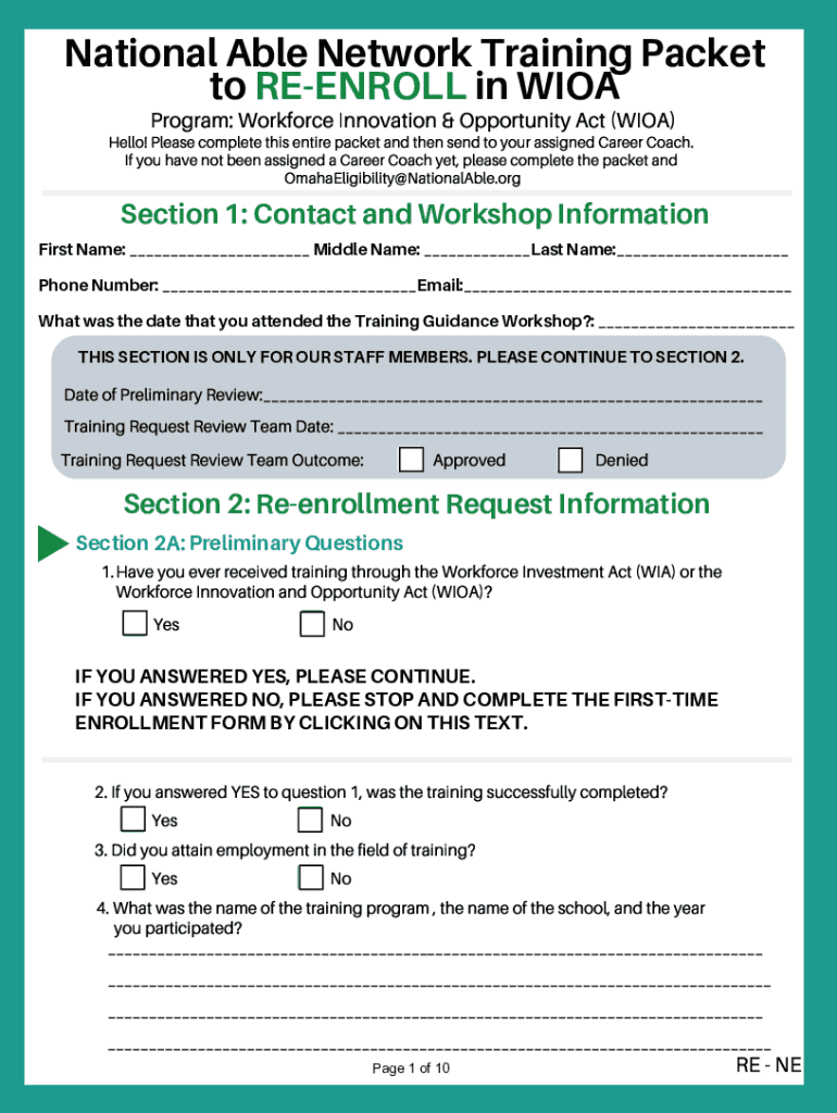 National Able Network Training Packet to ENROLL in WHOA Program: Workforce Innovation & Opportunity Act (WHOA)Hello! Please complete this entire packet and then send to your assigned Career Coach.