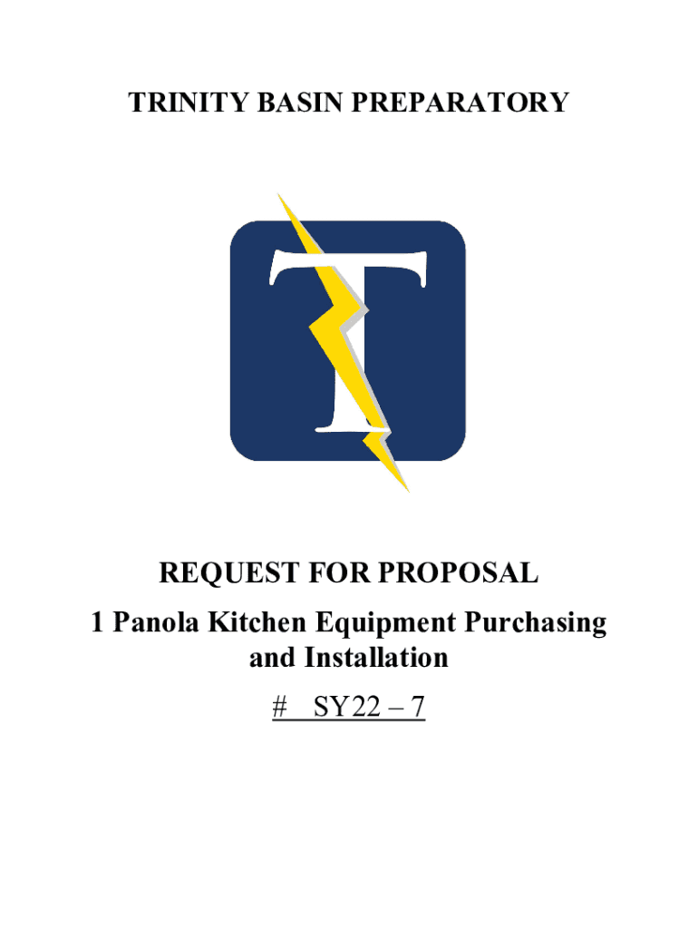 TRINITY BASIN PREPARATORYREQUEST FOR PROPOSAL 1 Canola Kitchen Equipment Purchasing and Installation # SY22 7TABLE OF CONTENTS PART I General Information..................................................................................................................