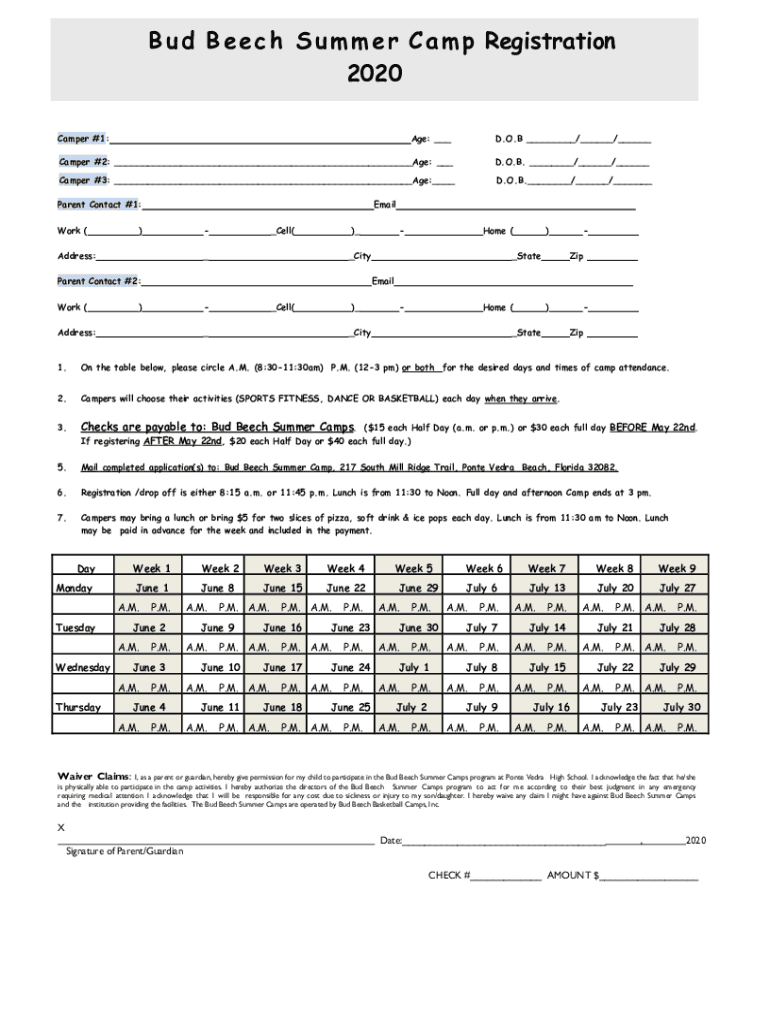 B u d B e e c h S u m m e r C an m p Registration