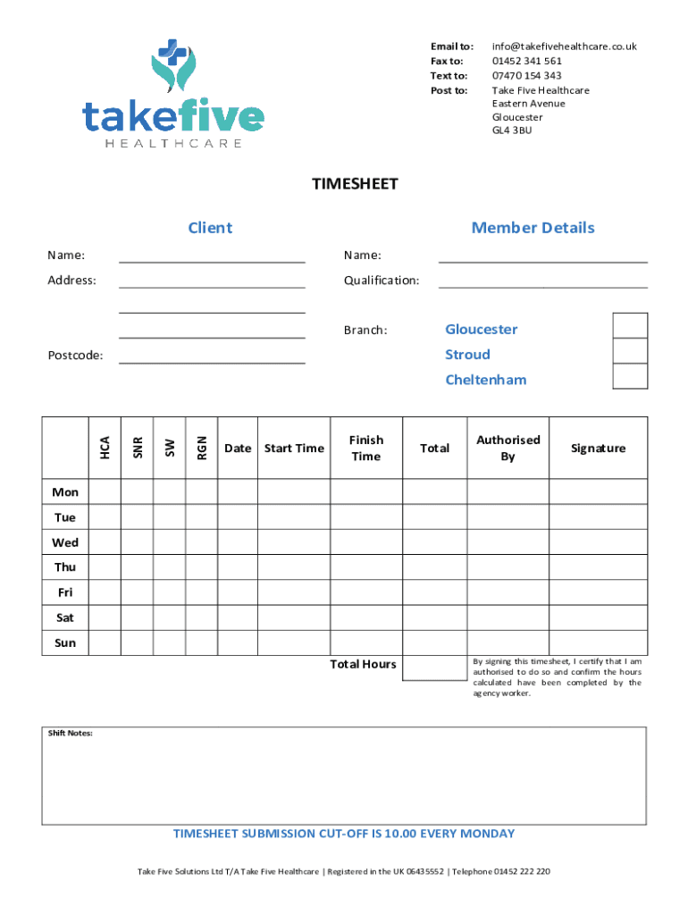 Get the free Take Five HealthcareCare Recruitment, Staff & Support
