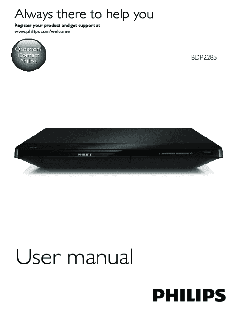 Always there to help you Register your product and get support at www.philips.com/welcomeQuestion? Contact PhilipsUser manualBDP2285Safety and important notice Read and understand all instructions