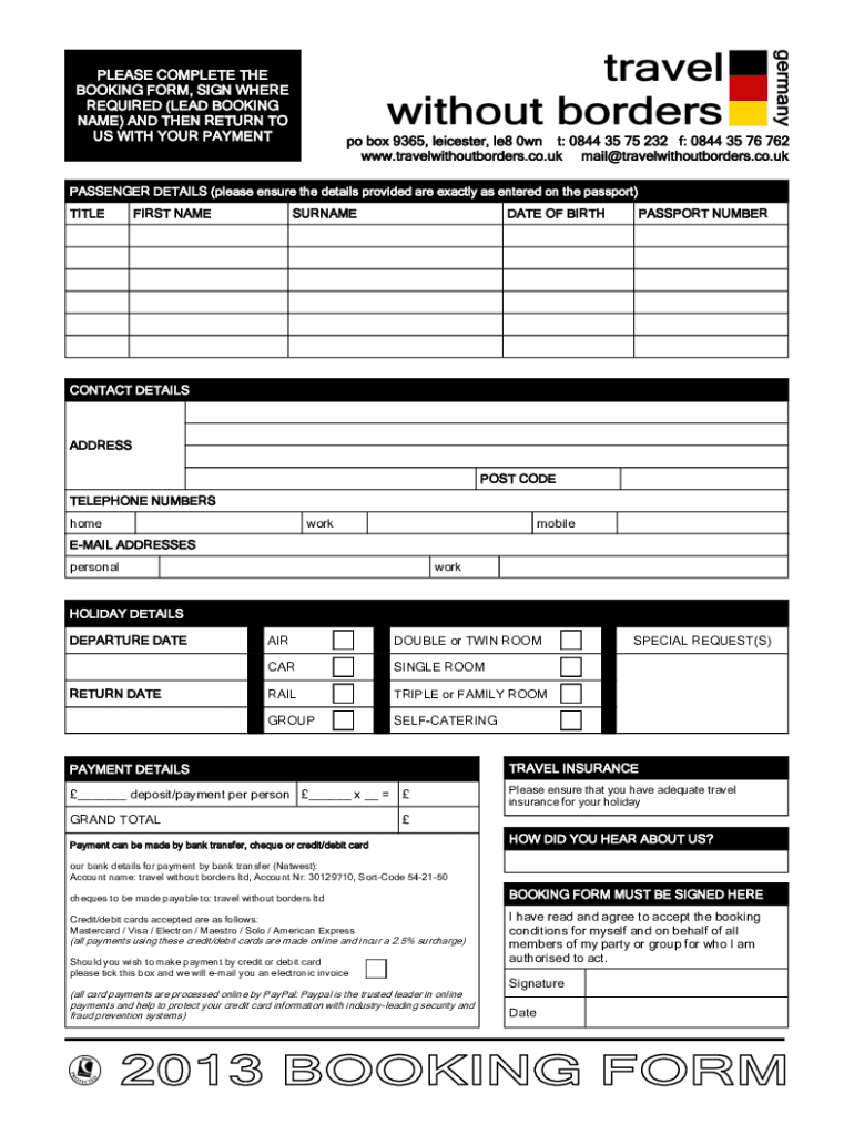 BOOKING FORM, SIGN WHERE