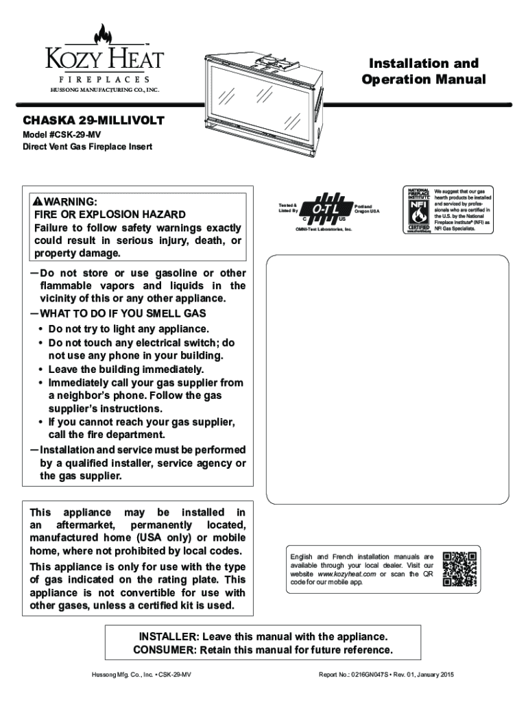 Operation ManualHUSSONG MANUFACTURING CO., INC.ALASKA 29MILLIVOLT