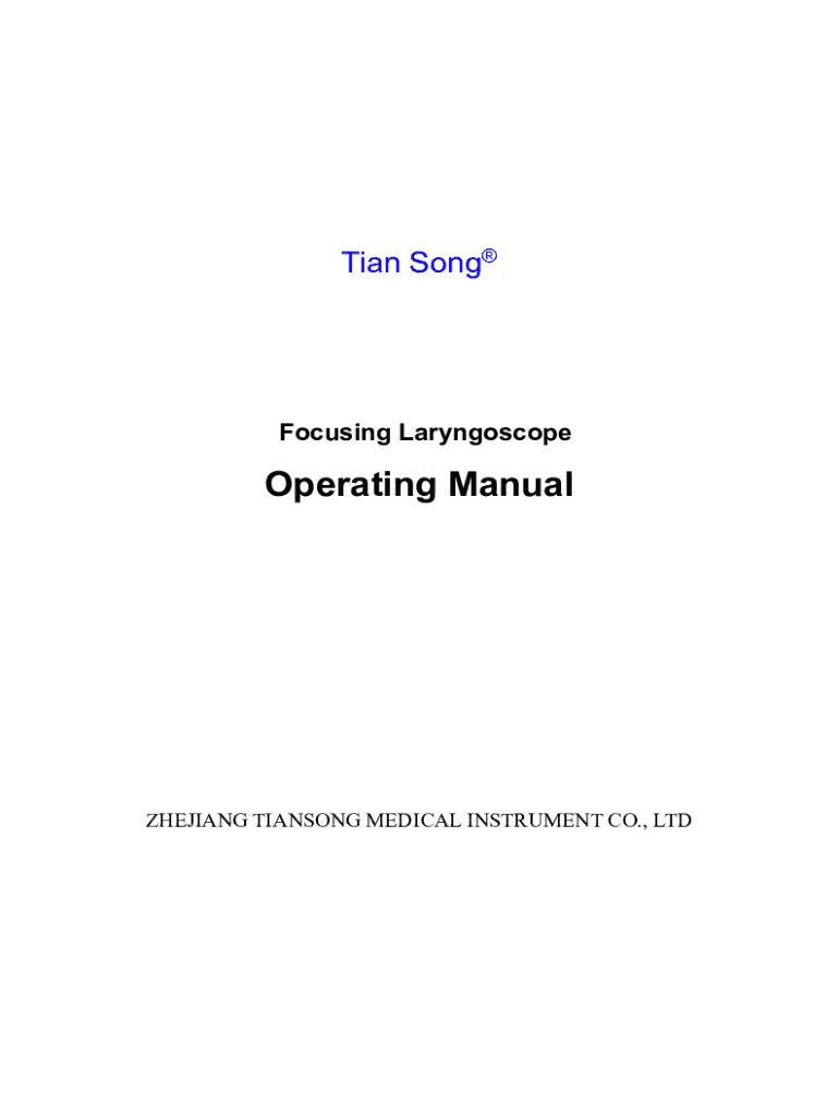 Then Unfocusing LaryngoscopeOperating ManualZHEJIANG SWANSONG MEDICAL INSTRUMENT CO., Laotian Song