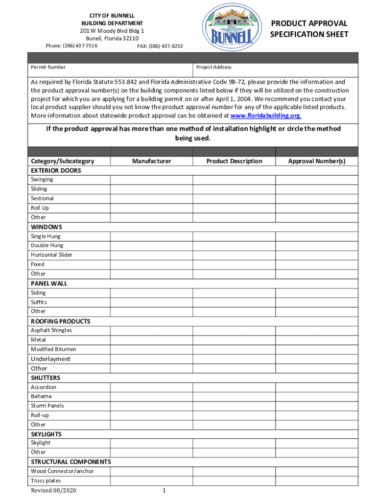 City of Bunnell building permits typically require information such as project details, property owner information, contractor information, and construction plans.
