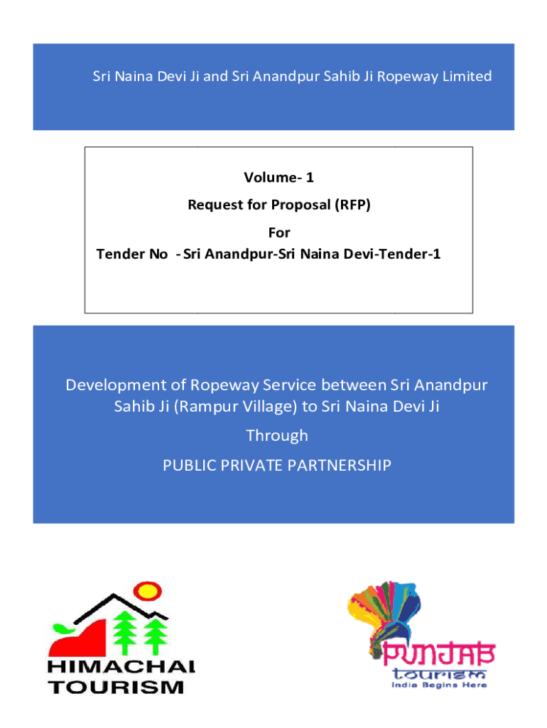 Sri Nina Devi Hi and Sri Grandeur Sahib Hi Rope way LimitedVolume 1 Request for Proposal (RFP) For Tender No Sri Grandeur AnandpurSri Nina Defender Tender1Development of Rope way Service between Sri