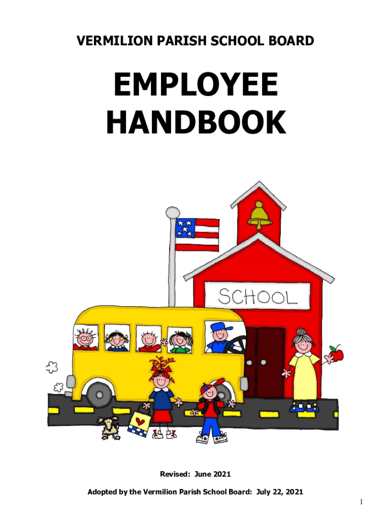 VERMILION PARISH SCHOOL BOARDEMPLOYEE HANDBOOKRevised: June 2021 Adopted by the Vermilion Parish School Board: July 22, 20211TABLE OF CONTENTSMISSION STATEMENT. . . . . . . . . . . . . . . . . . .