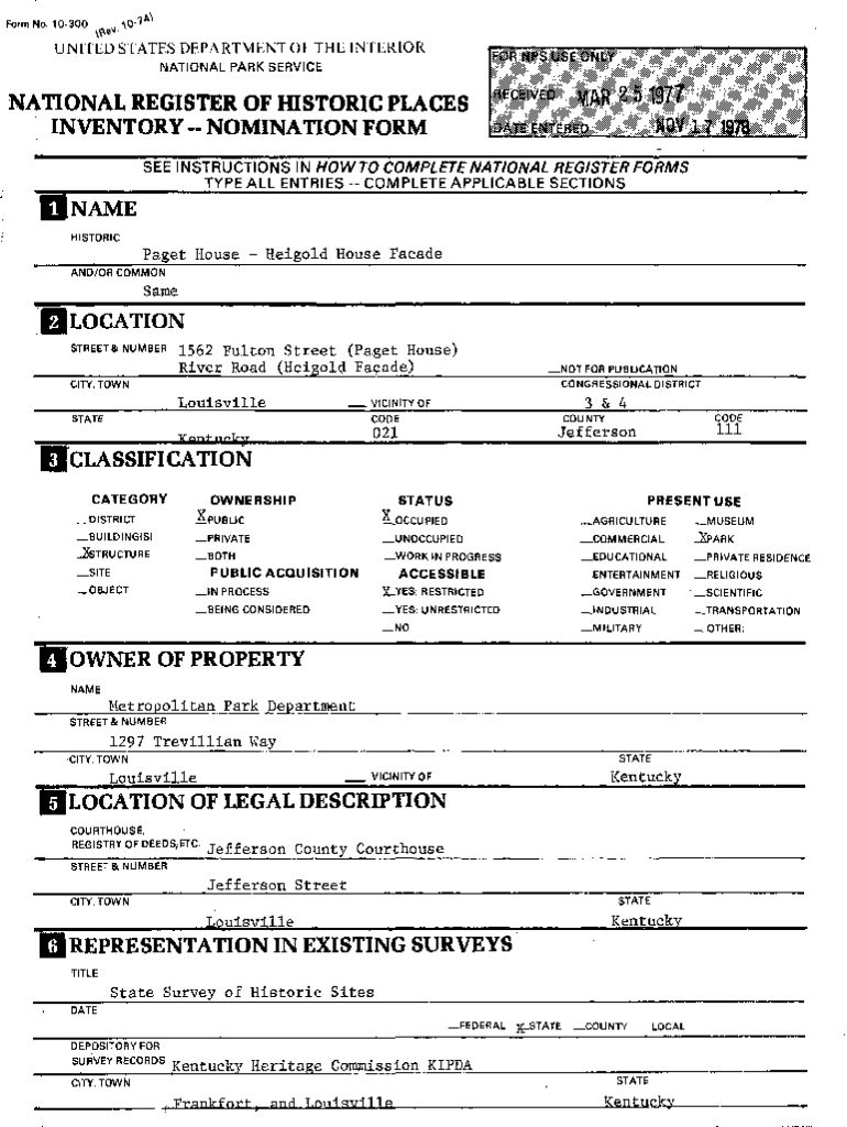 Form No. 10300 OEM, 01/VISITED STATES DEPARTMENT OF THE INTERIOR NATIONAL PARK SERVICENATIONAL REGISTER OF HISTORIC PLACES INVENTORY NOMINATION FORM SEE INSTRUCTIONS IN HO WTO COMPLETE NATIONAL REGISTER