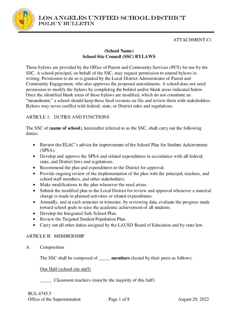 These bylaws are provided by the Office of Parent and Community Services (PCS) for use