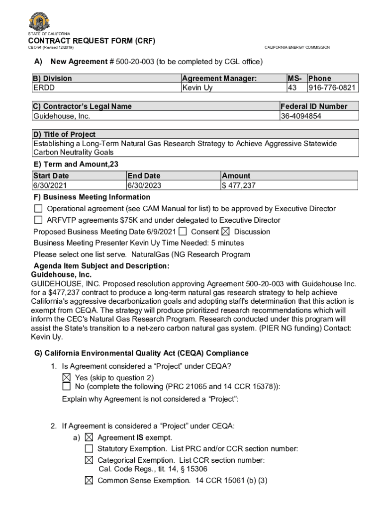 STATE OF CALIFORNIACONTRACT REQUEST FORM (CRF)