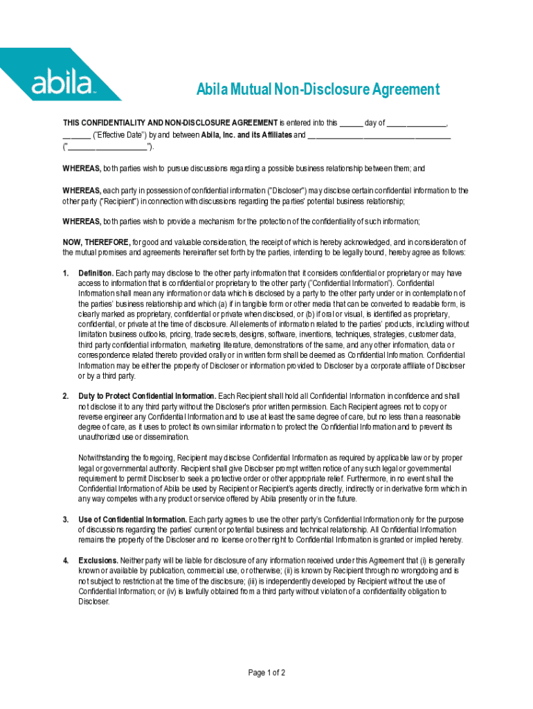 Edit your abila - mutual confidentiality form online