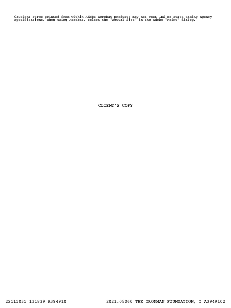 The Ironman Foundation is required to file the 05060 form with the IRS.