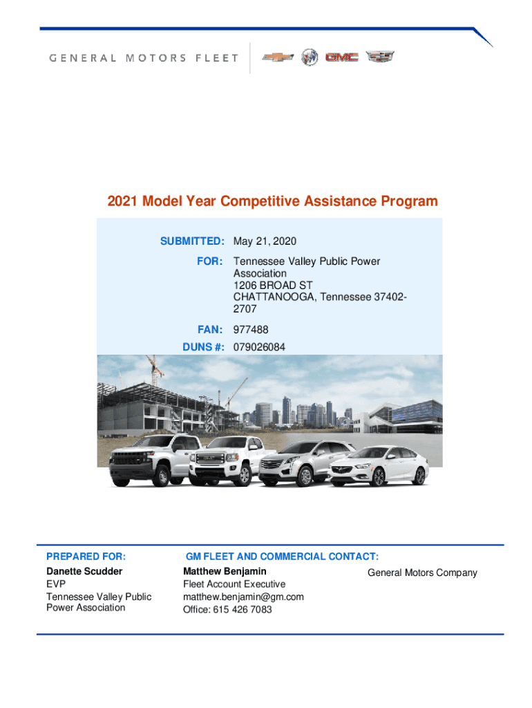 2021 Model Year Competitive Assistance Program SUBMITTED: May 21, 2020, FOR:Tennessee Valley Public Power Association 1206 BROAD ST CHATTANOOGA, Tennessee 374022707FAN:977488DUNS #: 079026084PREPARED