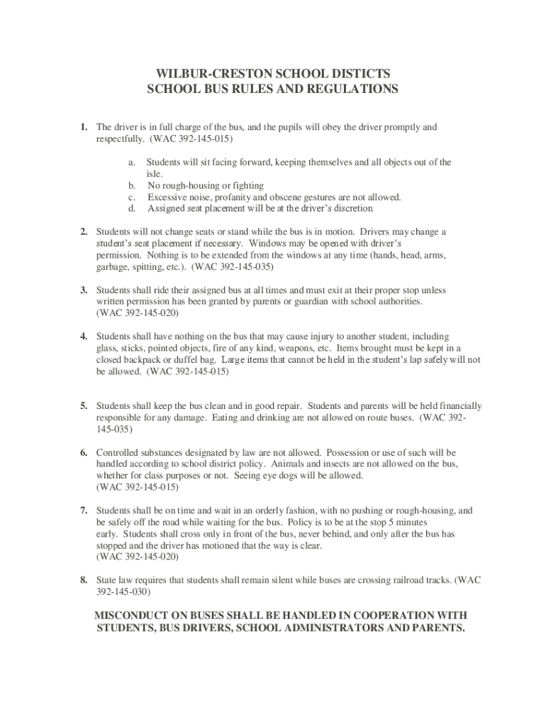 Get the free Bus Rules and Regulations - Wilbur-Creston School Districts