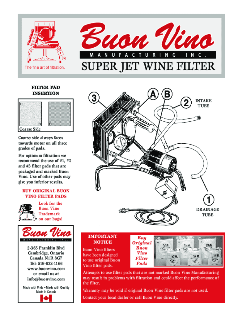 M A N U F A C T U R I N G The fine art of filtration. FILTER PAD INSERTION N C.SUPER JET WINE FILTER 3A B2INTAKE Tuberose Sidecars side always faces towards motor on all three grades of pads. For