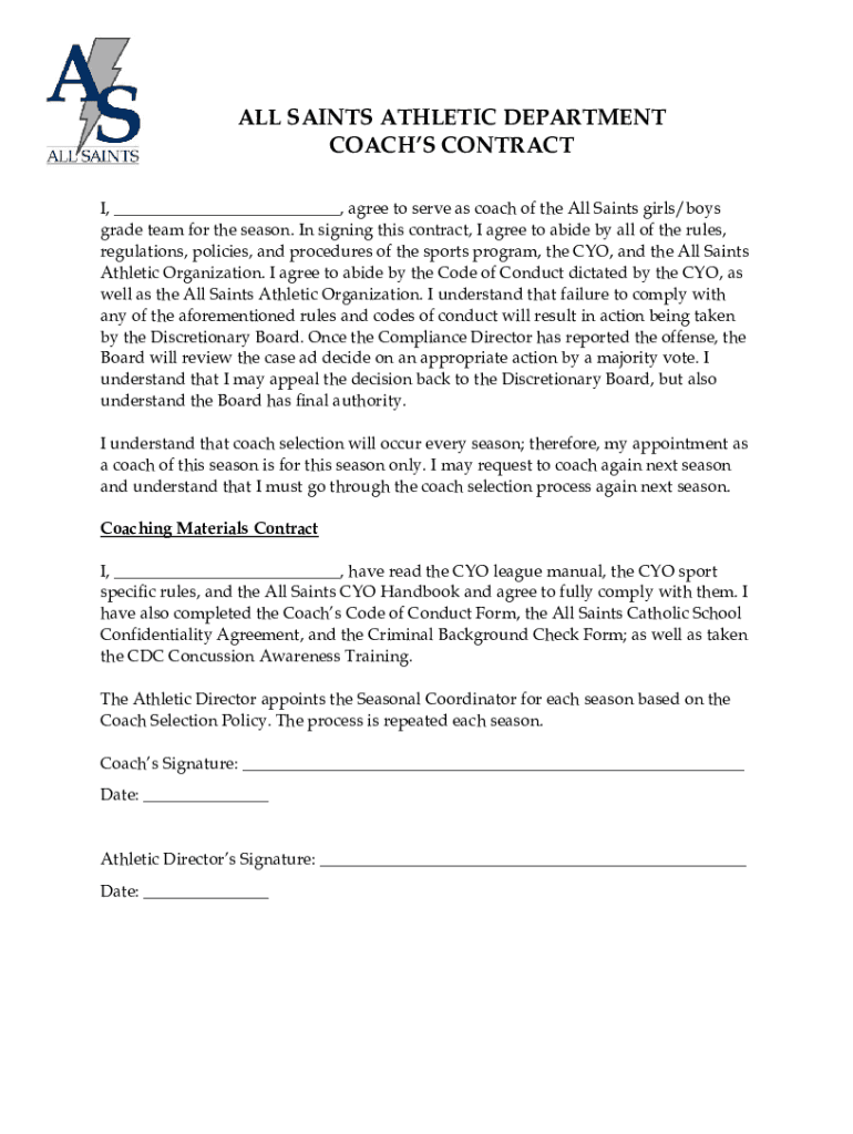 Get the free ALL SAINTS ATHLETIC DEPARTMENT COACH'S CONTRACT