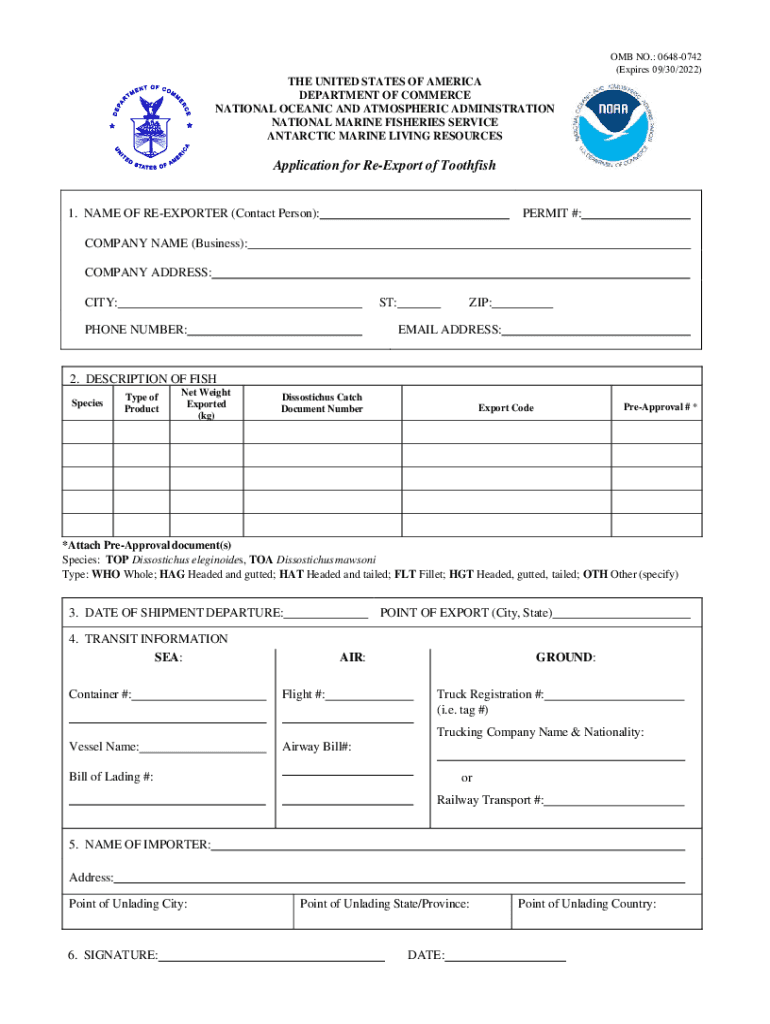 OMB NO.: 06480742 (Expires 09/30/2022)THE UNITED STATES OF AMERICA DEPARTMENT OF COMMERCE NATIONAL OCEANIC AND ATMOSPHERIC ADMINISTRATION NATIONAL MARINE FISHERIES SERVICE ANTARCTIC MARINE LIVING