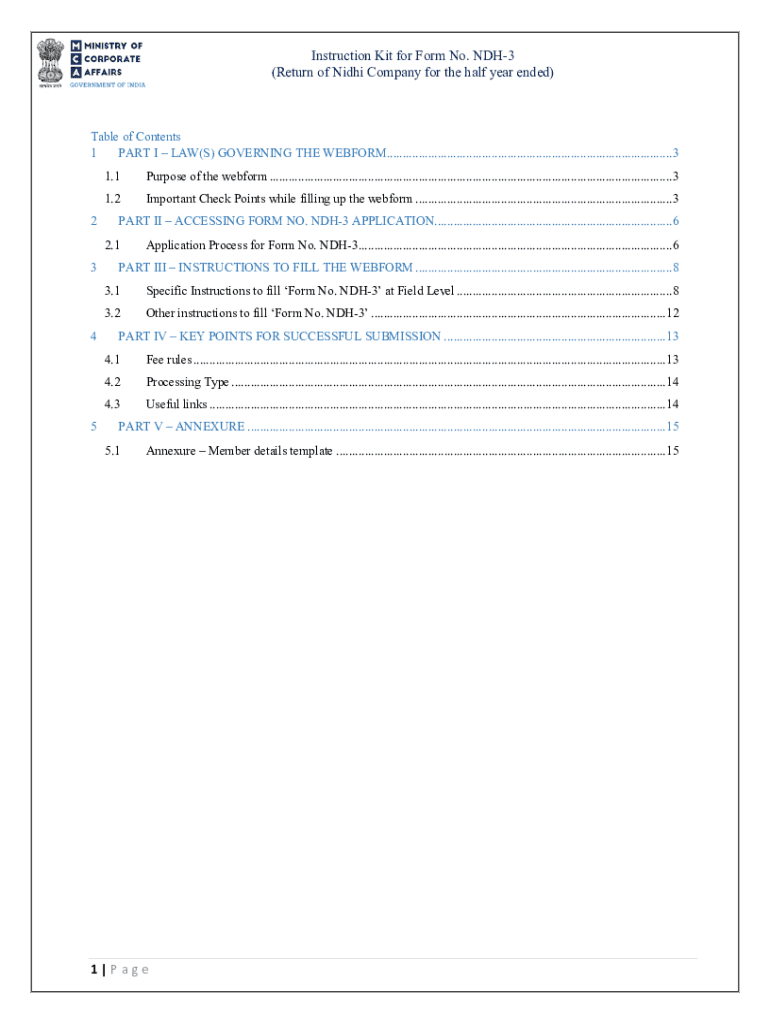 Instruction Kit for Form No. NDH3 (Return of Night Company for the half year ended)Table of Contents 1 PART I LAW(S) GOVERNING To PERFORM..........................................................................................