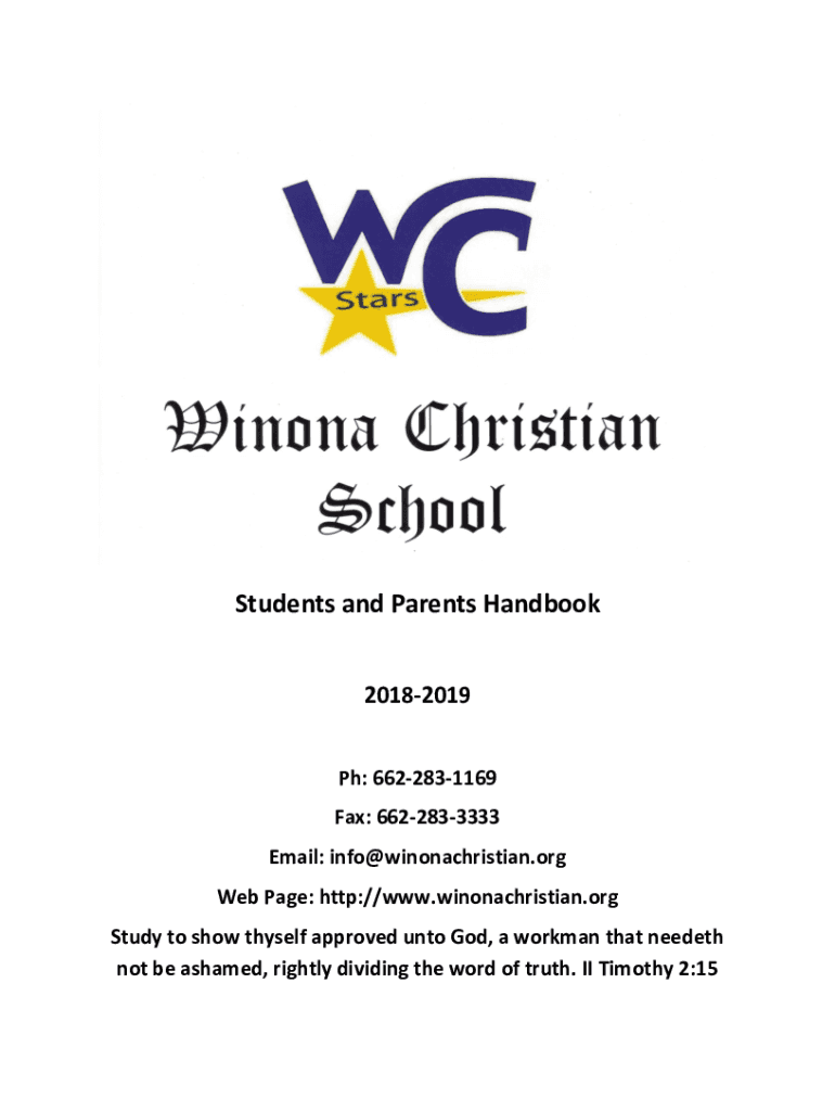 Students and Parents Handbook 20182019 pH: 6622831169 Fax: 6622833333 Email: info@winonachristian.org Web Page: http://www.winonachristian.org Study to show thyself approved unto God, a workman that