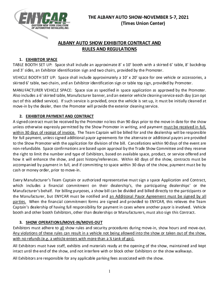 Get the free albany auto show exhibitor contract and rules and regulations