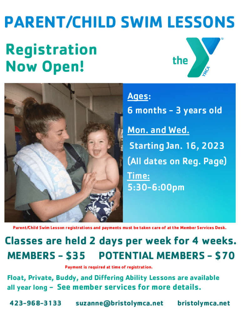 PARENT/CHILD SWIM LESSONS Registration Now Open! Ages: 6 months 3 years old Mon. And Wed. Starting Jan. 16, 2023 (All dates on Reg. Page) Time: 5:306:00pmParent/Child Swim Lesson registrations and