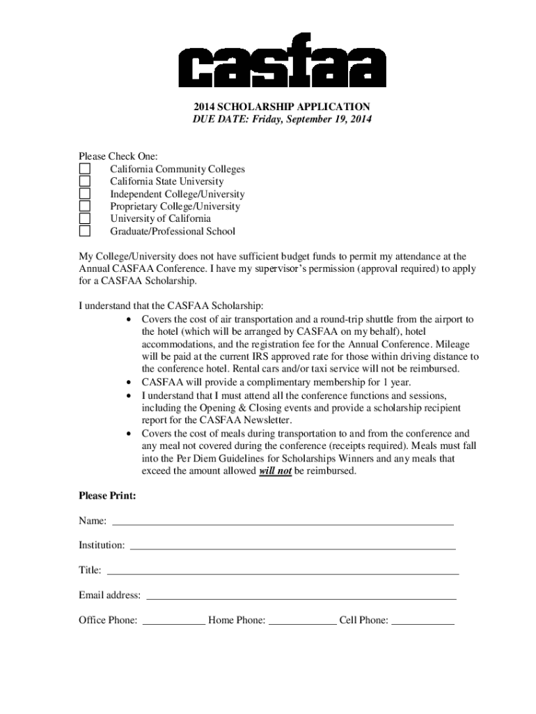 2014 SCHOLARSHIP APPLICATION DUE DATE: Friday, September 19, 2014Please Check One: California Community Colleges California State University Independent College/University Proprietary College/University