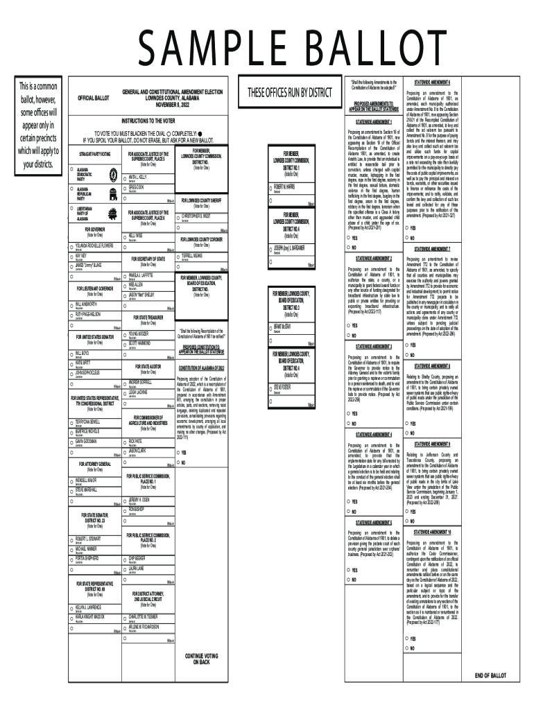 S A M P L E B A L LOT 11This is a common ballot, however, some offices will appear only in certain precincts which will apply to your districts. ABSENTEE OFFICIAL BALLOT11ABSENTEE OFFICIAL BALLOT