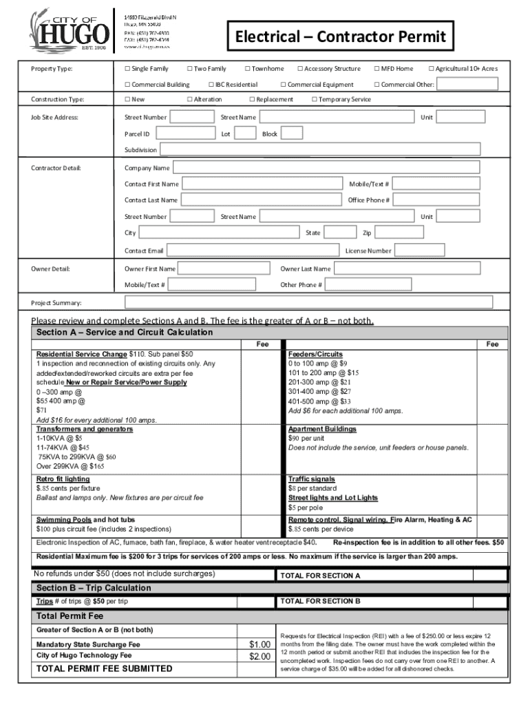 Electrical Contractor Permit Property Type: Single Family Two Family Commercial Building Town home IBC ResidentialConstruction Type: New Alteration Job Site Address:Street NumberStreet Namespace Idiot