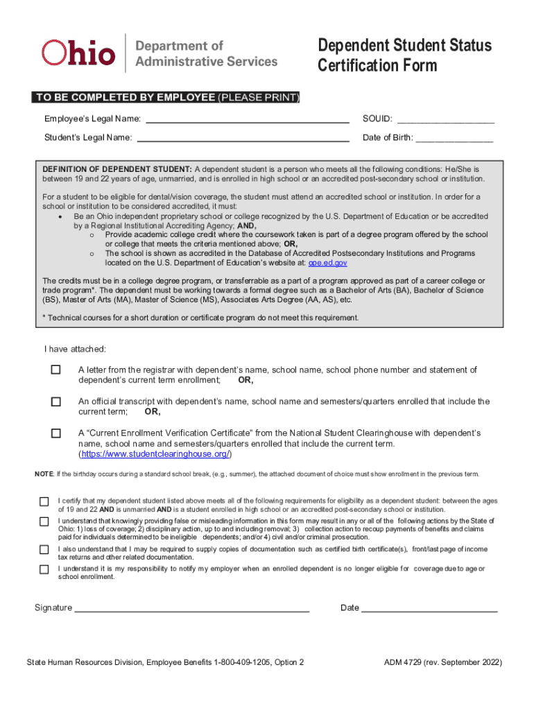 Get the free Dependent Student Status Certification Form
