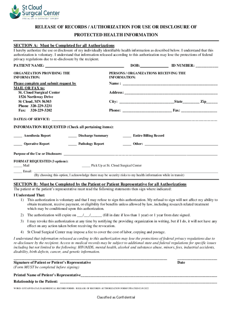 To fill out a release of records authorization, you need to provide your personal information, specify the records you want to release, and indicate the party you authorize to access the information.