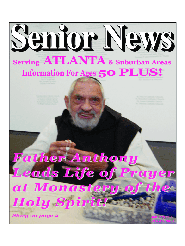 ServingATLANTA & Suburban AreasInformation For Ages 50PLUS! Father Anthony Leads Life of Prayer at Monastery of the Holy Spirit! Story on page 2January 2013 Vol. 27, No. 1Page 2 January 2013 Senior