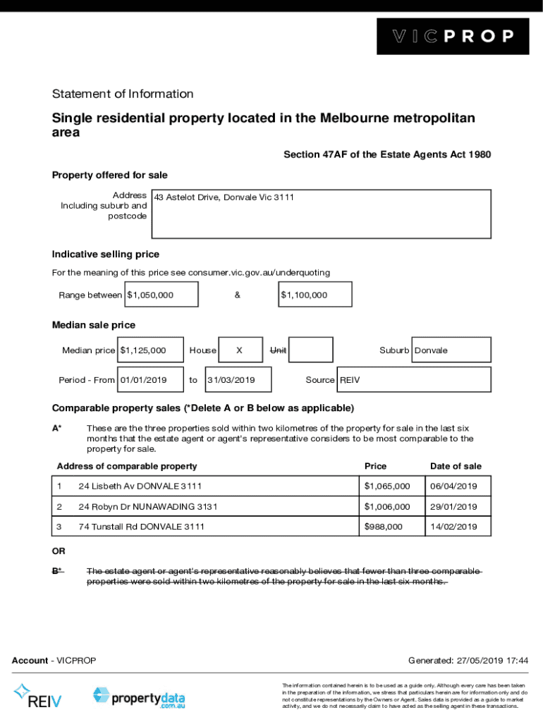 Statement of InformationSingle residential property located in the Melbourne metropolitan