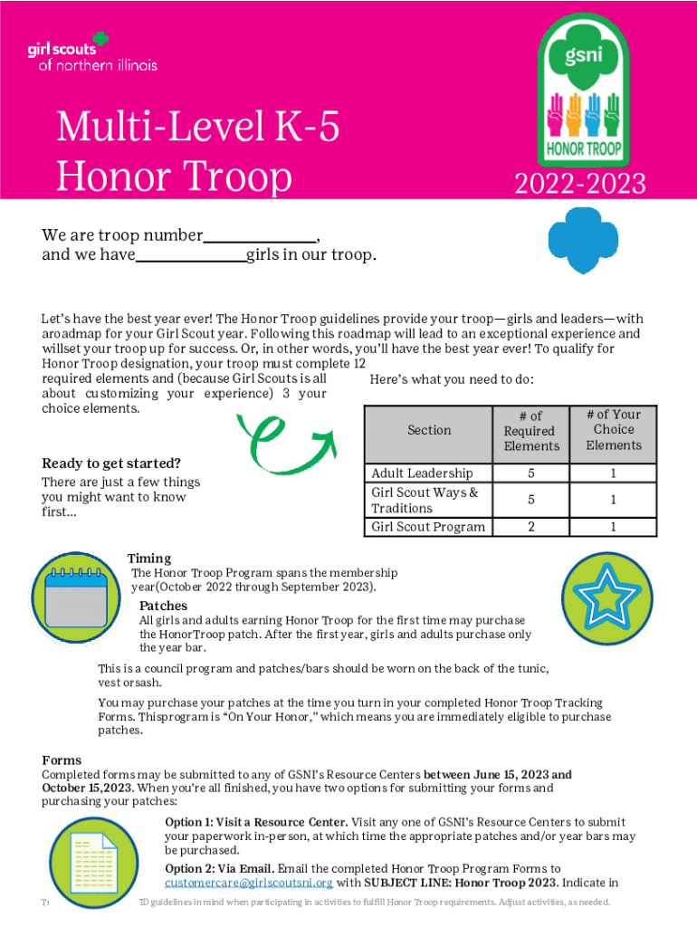 Multilevel K5 Honor Troop We are troop number and we have20222023, girls in our troop. Let's have the best year ever! The Honor Troop guidelines provide your troop girls and leaders with roadmap for