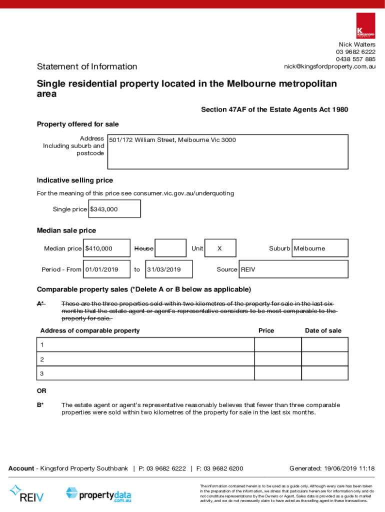 Nick Walters 03 9682 6222 0438 557 885 nick@kingsfordproperty.com.auStatement of InformationSingle residential property located in the Melbourne metropolitan area Section 47AF of the Estate Agents
