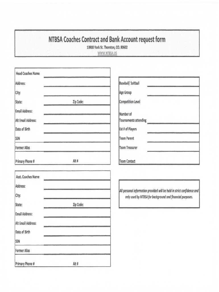 Get the free NTBSA Coaches Contract and Bank Account request form