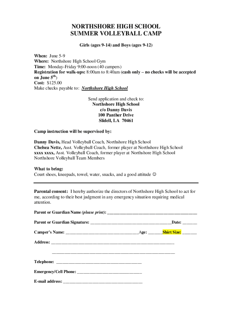 Email, fax, or share your nike volleyball camp at form via URL. You can also download, print, or export forms to your preferred cloud storage service.