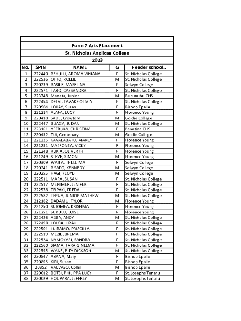 Get the free No. SPIN NAME G Feeder school.. Form 7 Arts Placement St ...