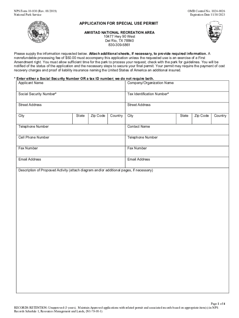 NPS Form 10930 (Rev. 08/2019) National Park Service OMB Control No. 10240026 Expiration Date 11/30/2023APPLICATION FOR SPECIAL USE PERMIT AMISTAD NATIONAL RECREATION AREA 10477 Hwy 90 West Del Rio,