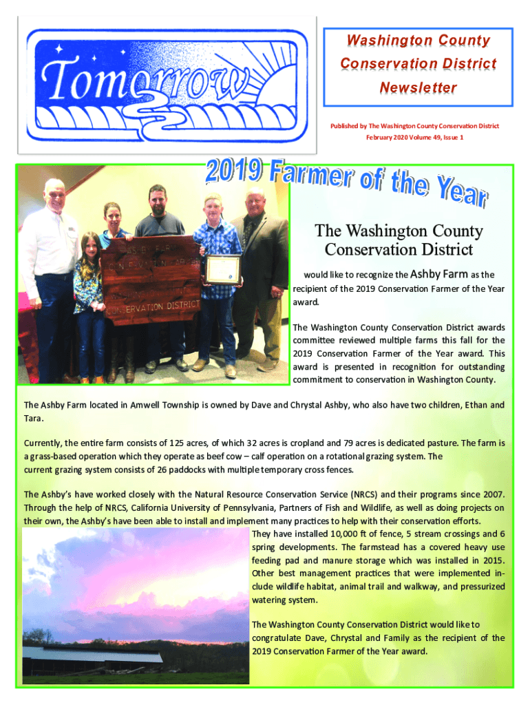Washington CountyConservation District Newsletter Published by The Washington County Conservation District February 2020 Volume 49, Issue 1The Washington County Conservation District would like to