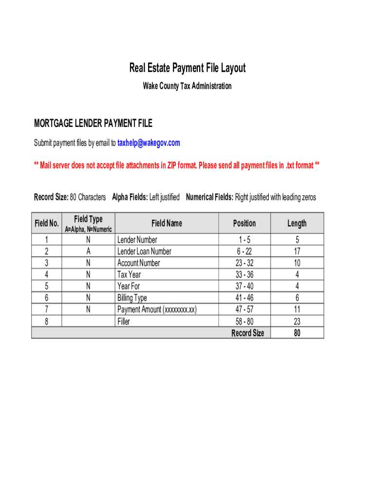 Real Estate Payment File Layout