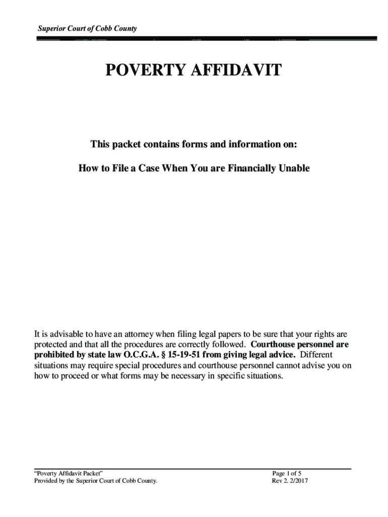 Superior Court of Cobb CountyPOVERTY Affidavits packet contains forms and information on: