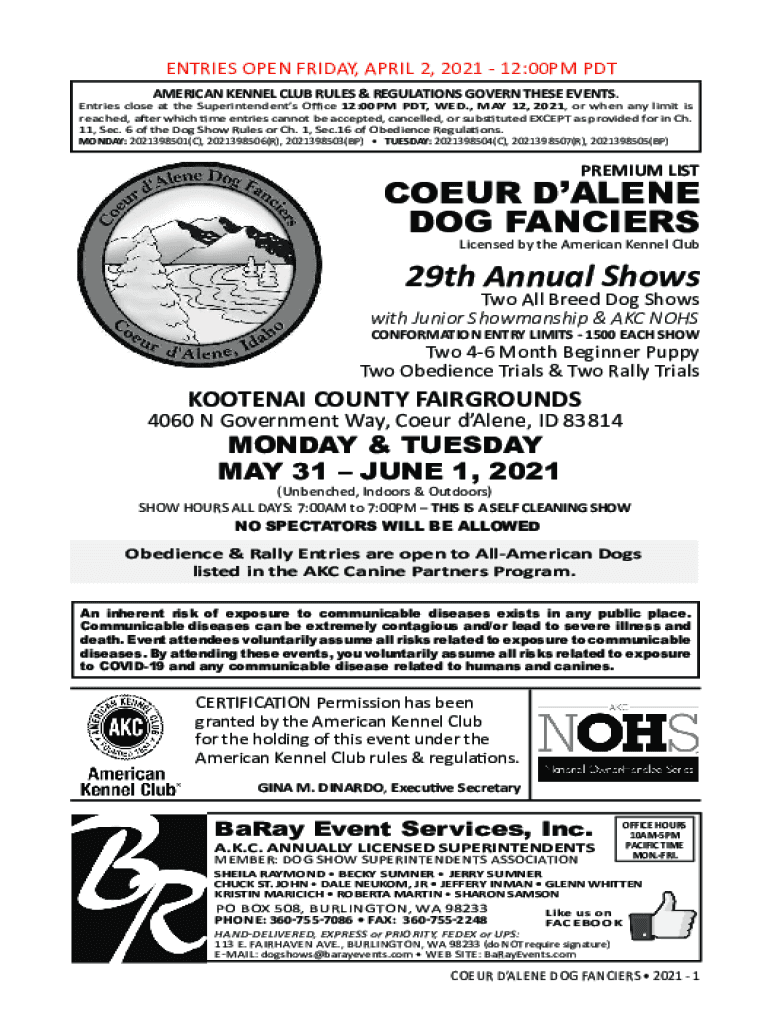 IES CLOSE WEDNESDAY NOON, MAY 8, 2019ime entries cannot be accepted, canceled, altered or substituted ENTRIES OPEN6 FRIDAY, APRIL 2, Rules. 2021 12:00PM PDT provided for in Chapter 11, Section of